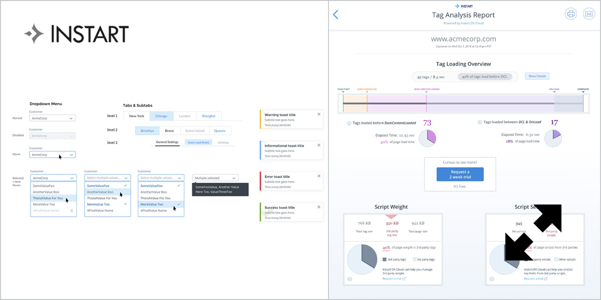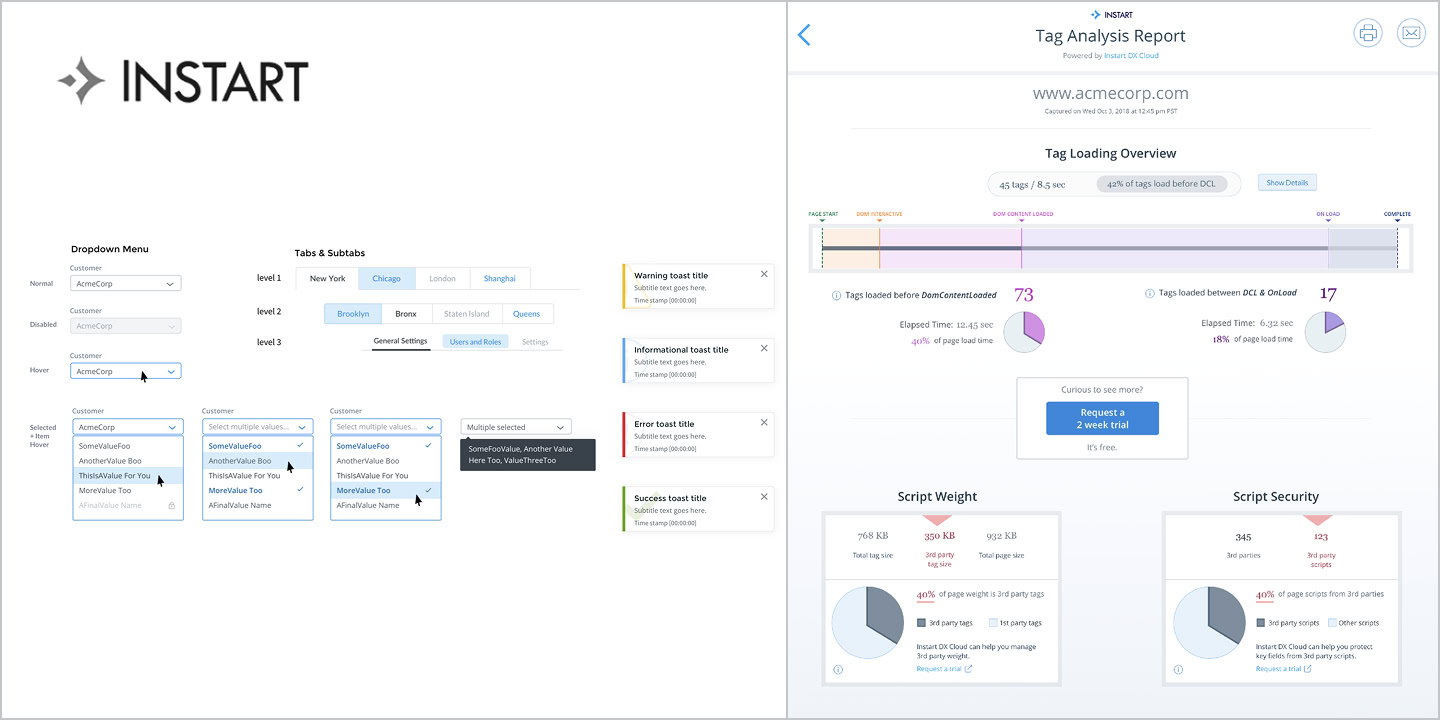 As the sole designer (UX Director) at Instart Logic, I drove pixels and strategy with a fully re-built design system, overhauled onboarding flow, and 5 new features per customer validation, before acquisition by Akamai.