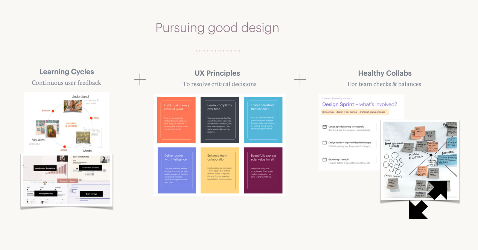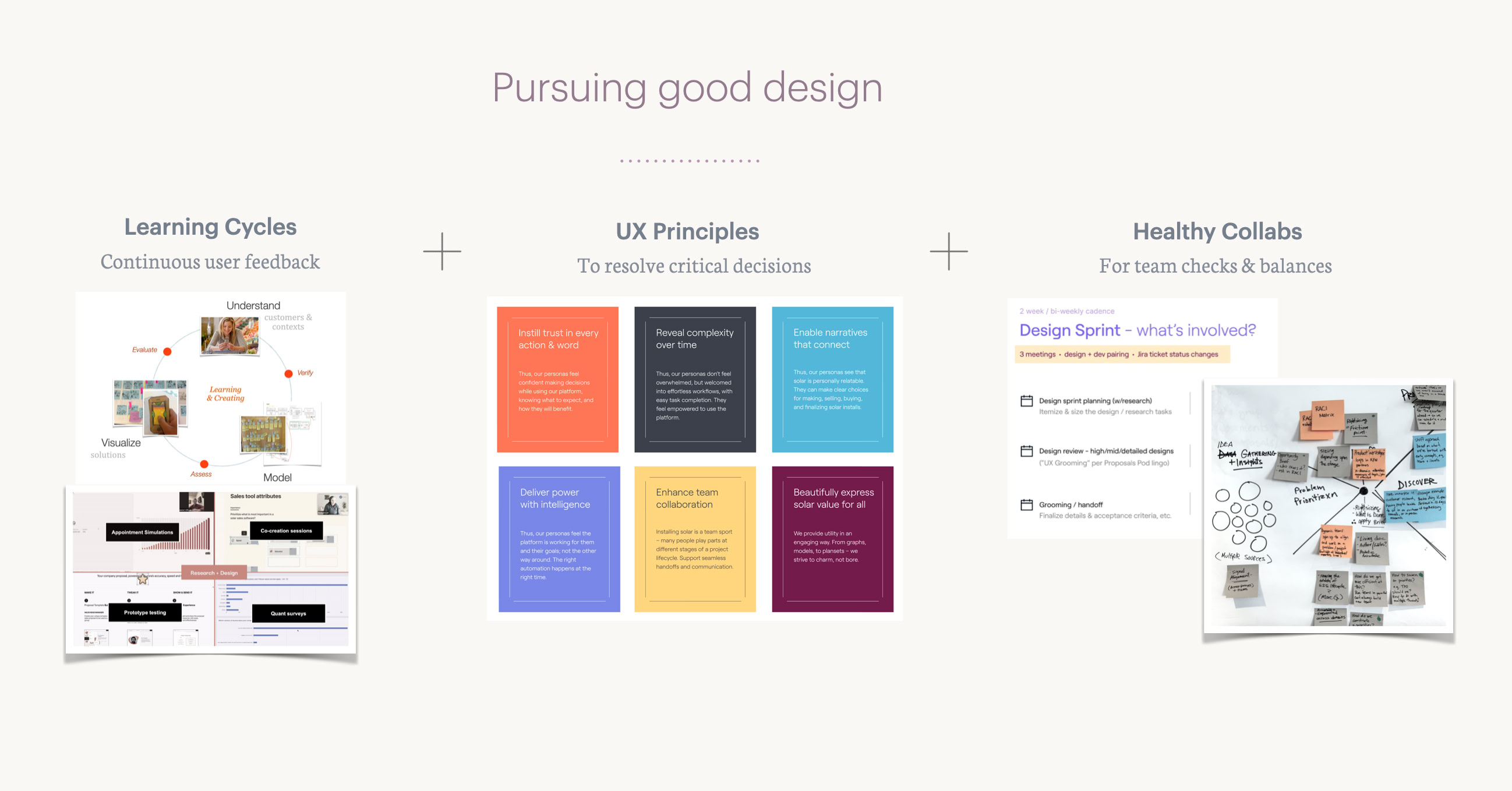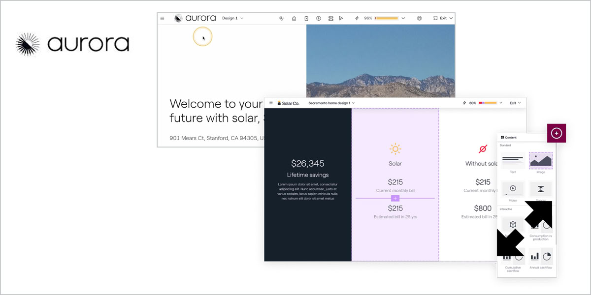 As Design Manager at Aurora Solar, I led the redesign of our sales suite, with cross-functional journey mapping, research-informed vision concepts, and executive buy-in for a revamp released in 9 months. View case study →